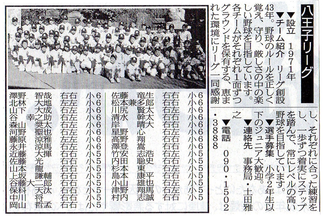 今週は我が八王子リトルの紹介も掲載されていましたよ!