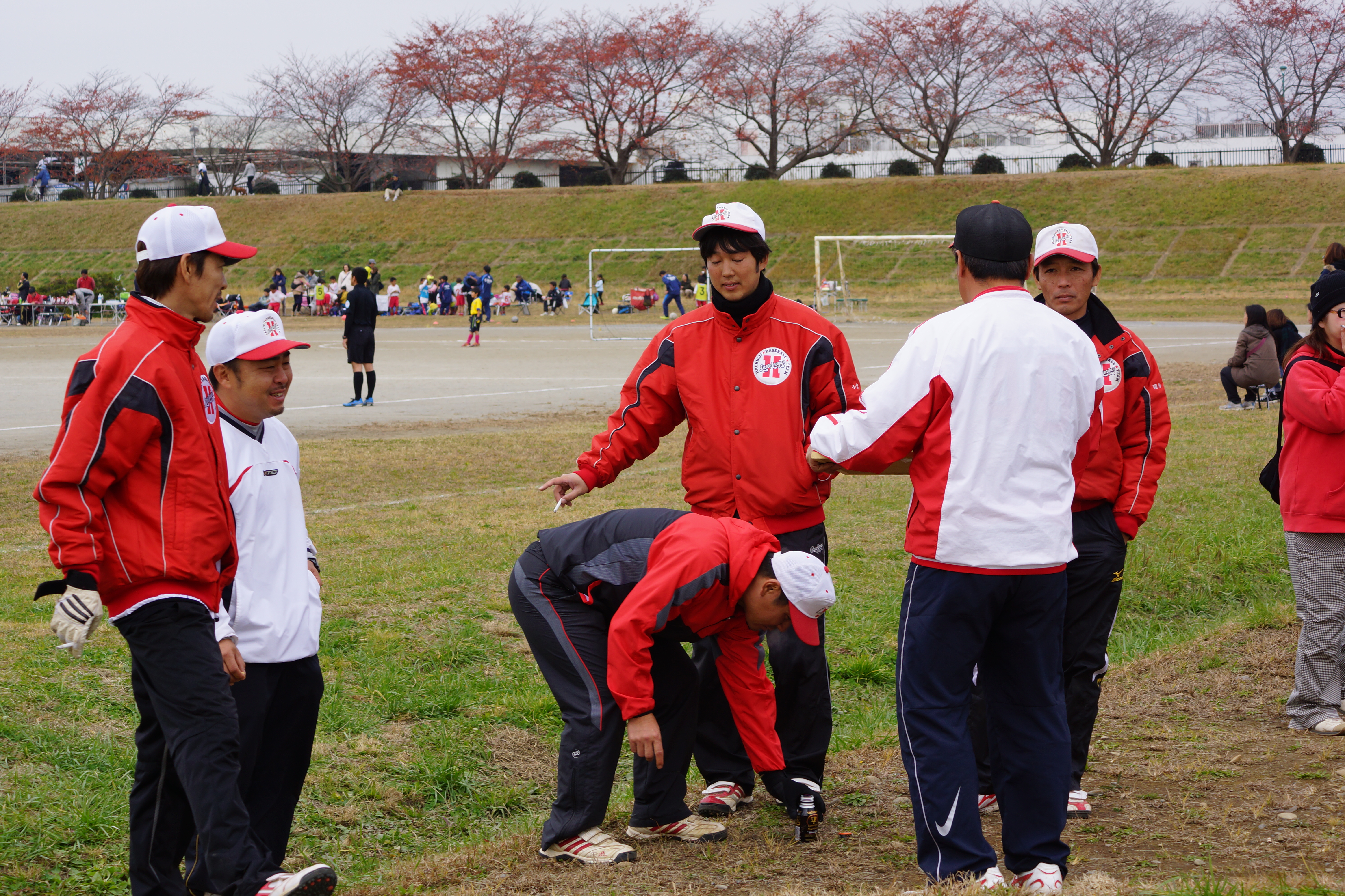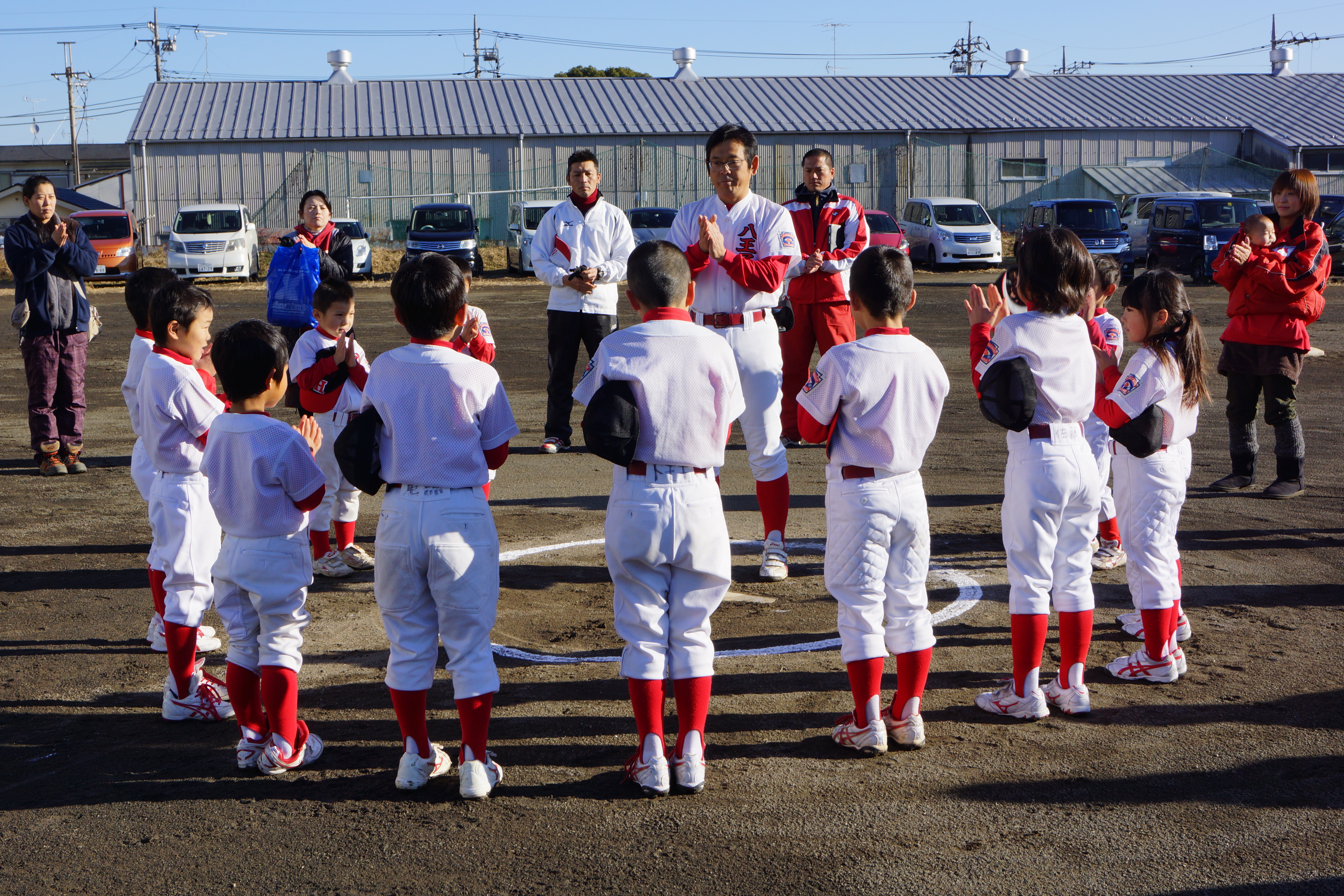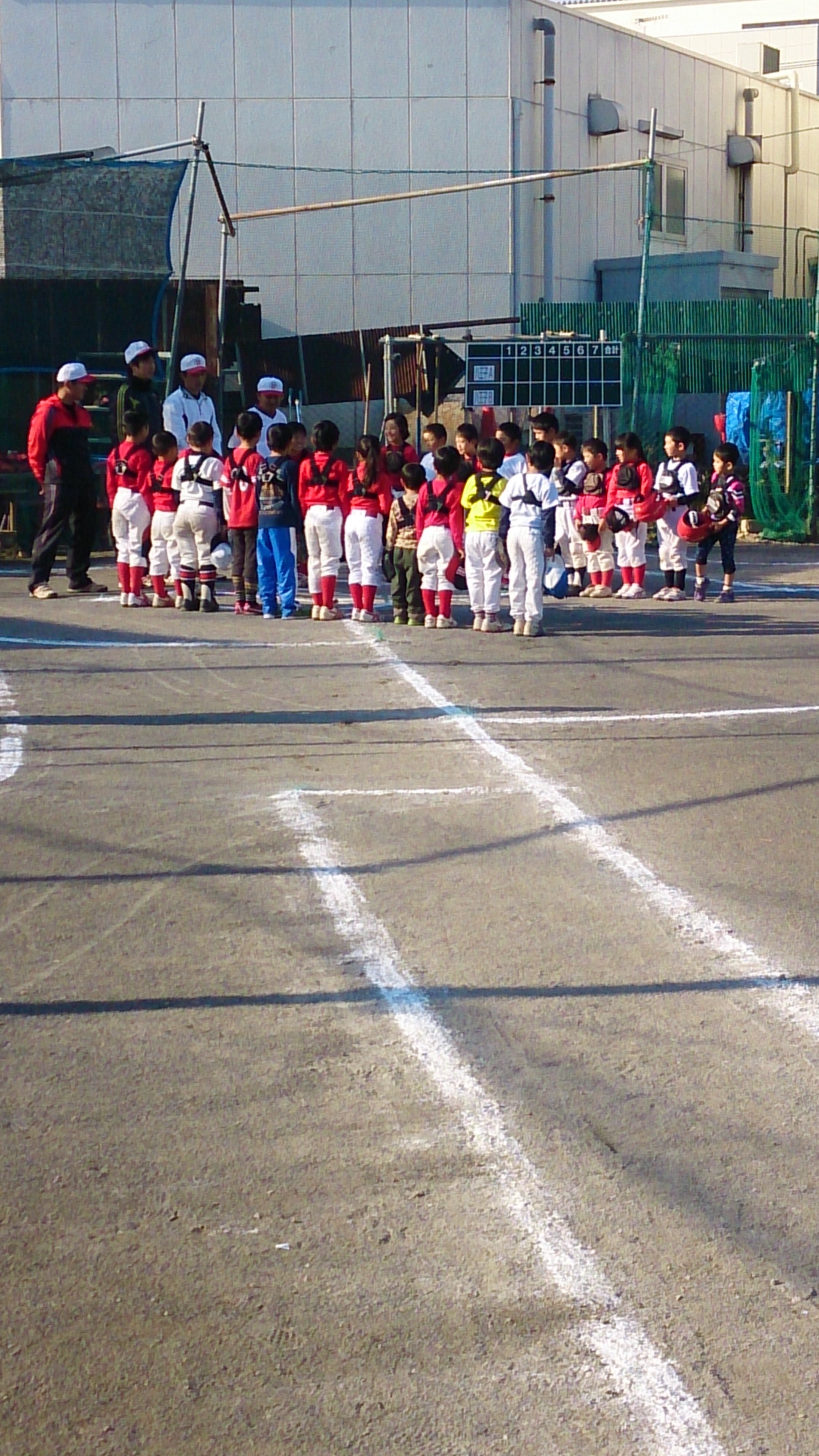 寒さ厳しい中、グランドに集合 まだまだ正月モードが抜け切れていませんが・・・