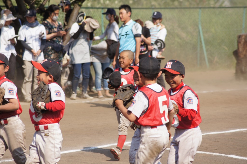 でも、アウトを1つ取るとみんなで喜んで楽しそうに試合をしていました(^o^)