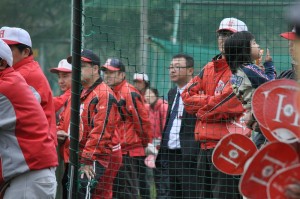 この日仕事だった川尻コーチも昼休みにスーツ姿で駆けつけました。