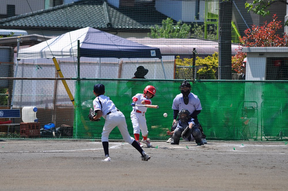 また、この日は母の日でしたが、母の日と言えばK尻君。 昨年の母の日(横浜青葉リーグとの練習試合)にはお母さんへのプレゼントとして3ベースを含む4打数3安打の活躍を見せ、お母さんを喜ばせていました。 そして今年もいい当たりを見せていましたね~。