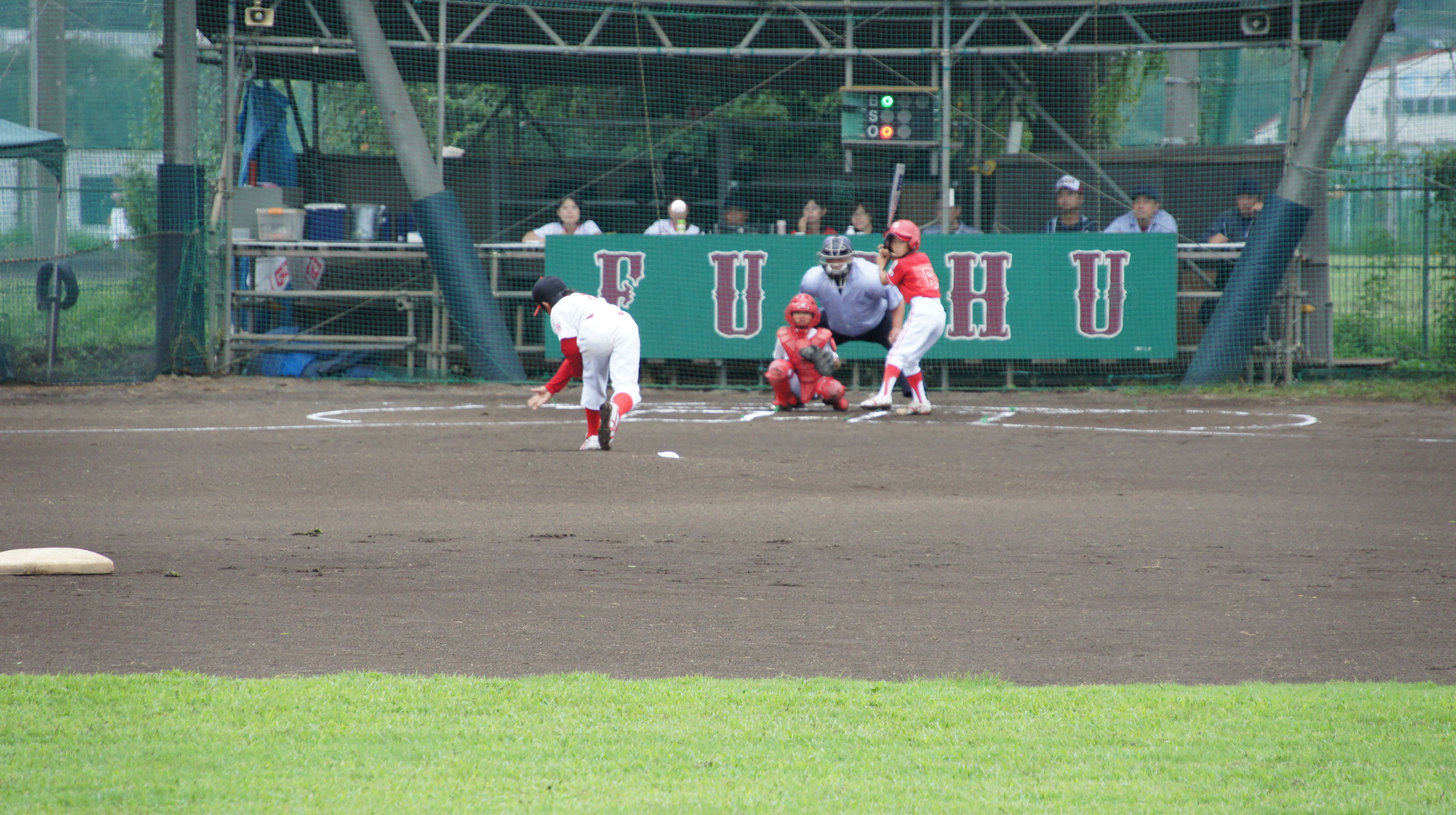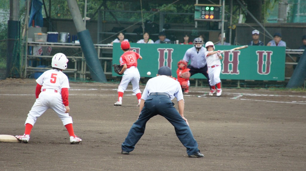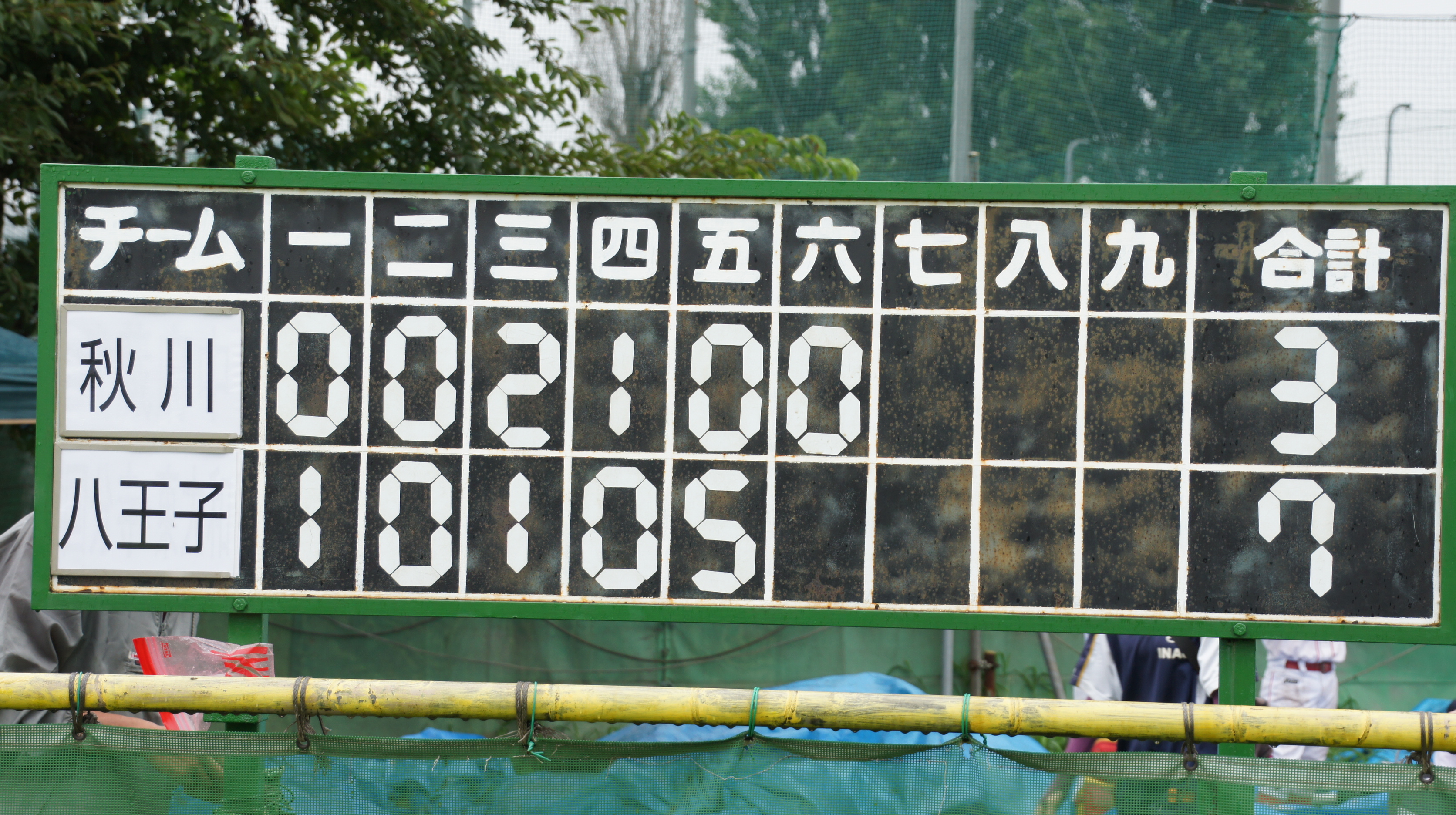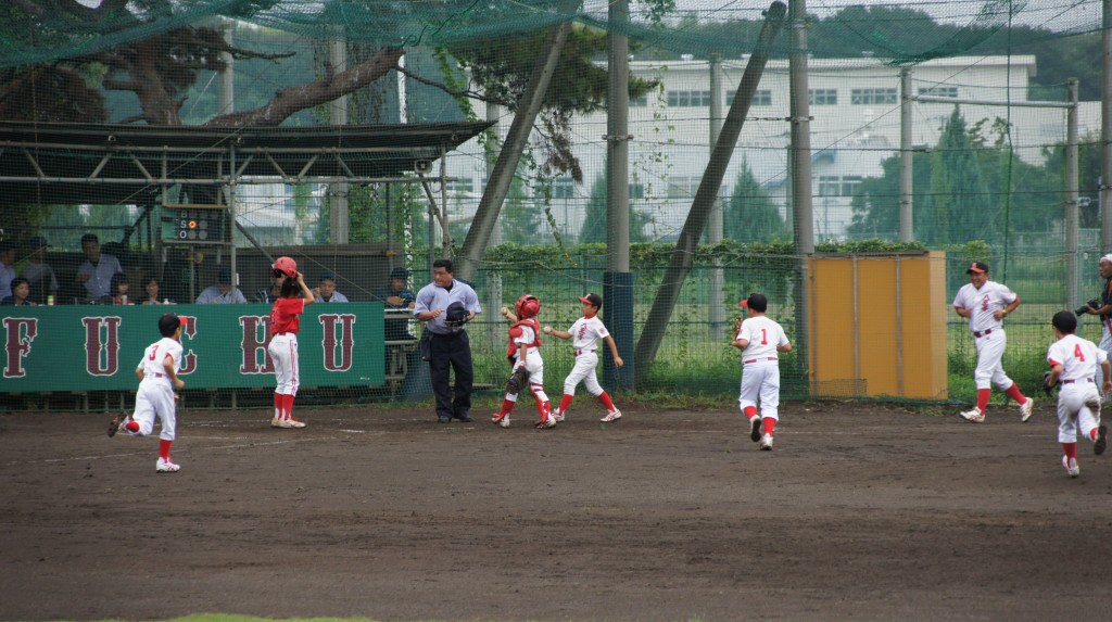 8月30日(日)、小雨が降りしきる中、武蔵府中リーググランドにて、八王子 VS 秋川リーグの試合が行われました。試合結果から申し上げますと5回の裏に八王子の猛打爆発で公式戦初勝利!練習試合を含めても初めての勝利になります。