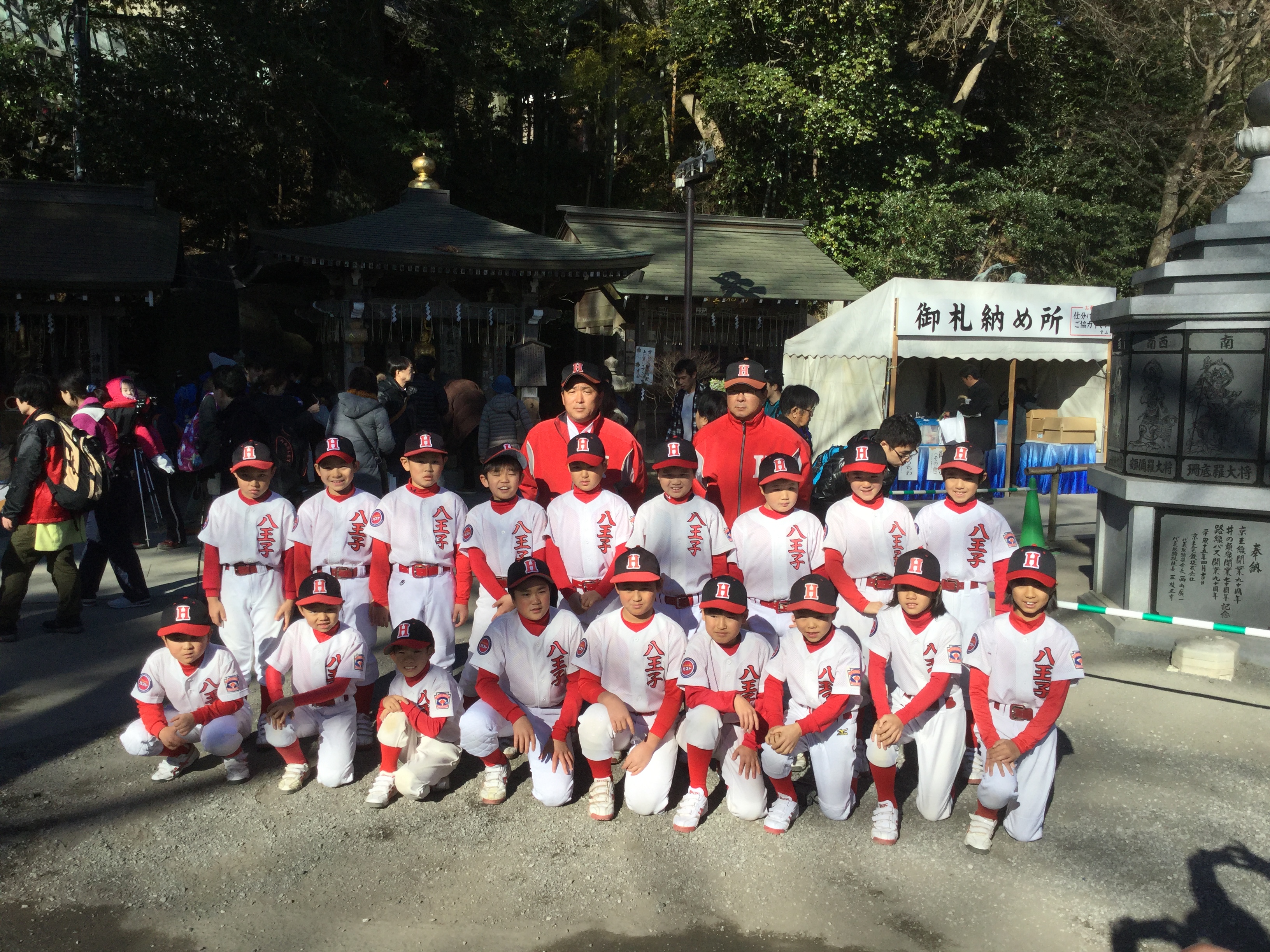 八王子リトルリーグは1月9日(土)に高尾山薬王院にて、恒例の必勝祈願を行いました。選手・スタッフ一同は、今年の飛躍を誓い、一丸となって目標を勝ち取る決意を固め、2016年のチームを始動させました。