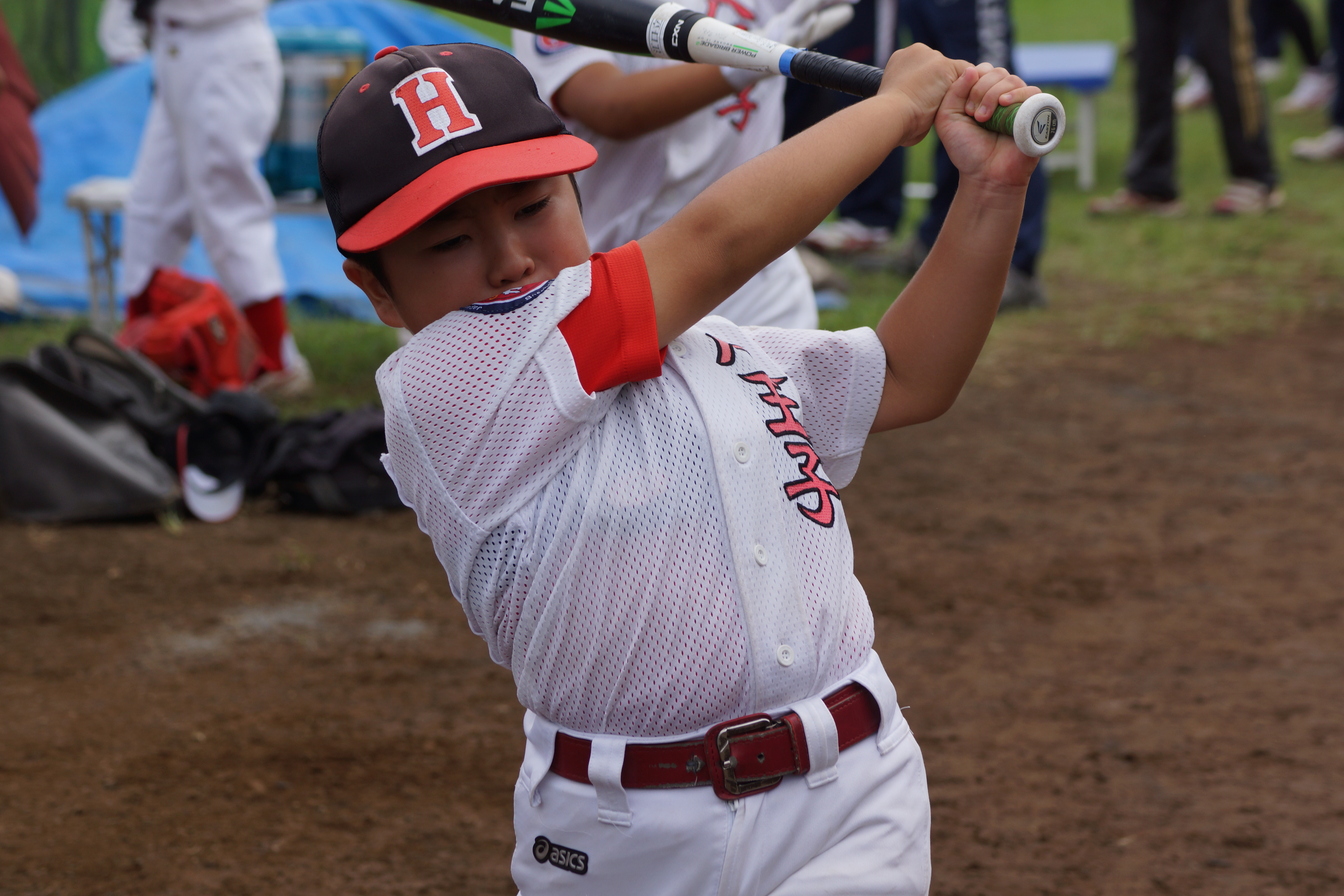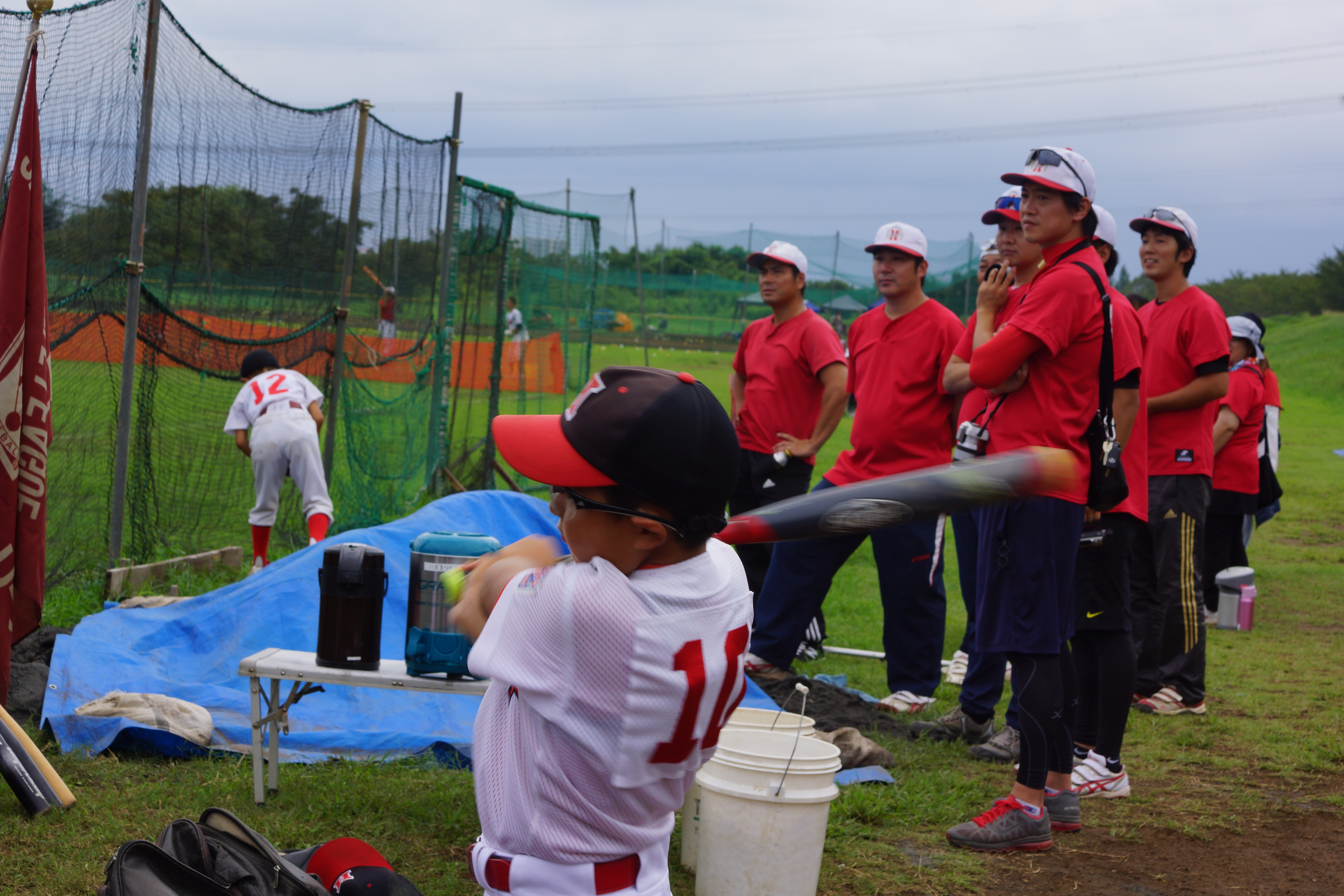 控えの選手も、バットを振って備えます!