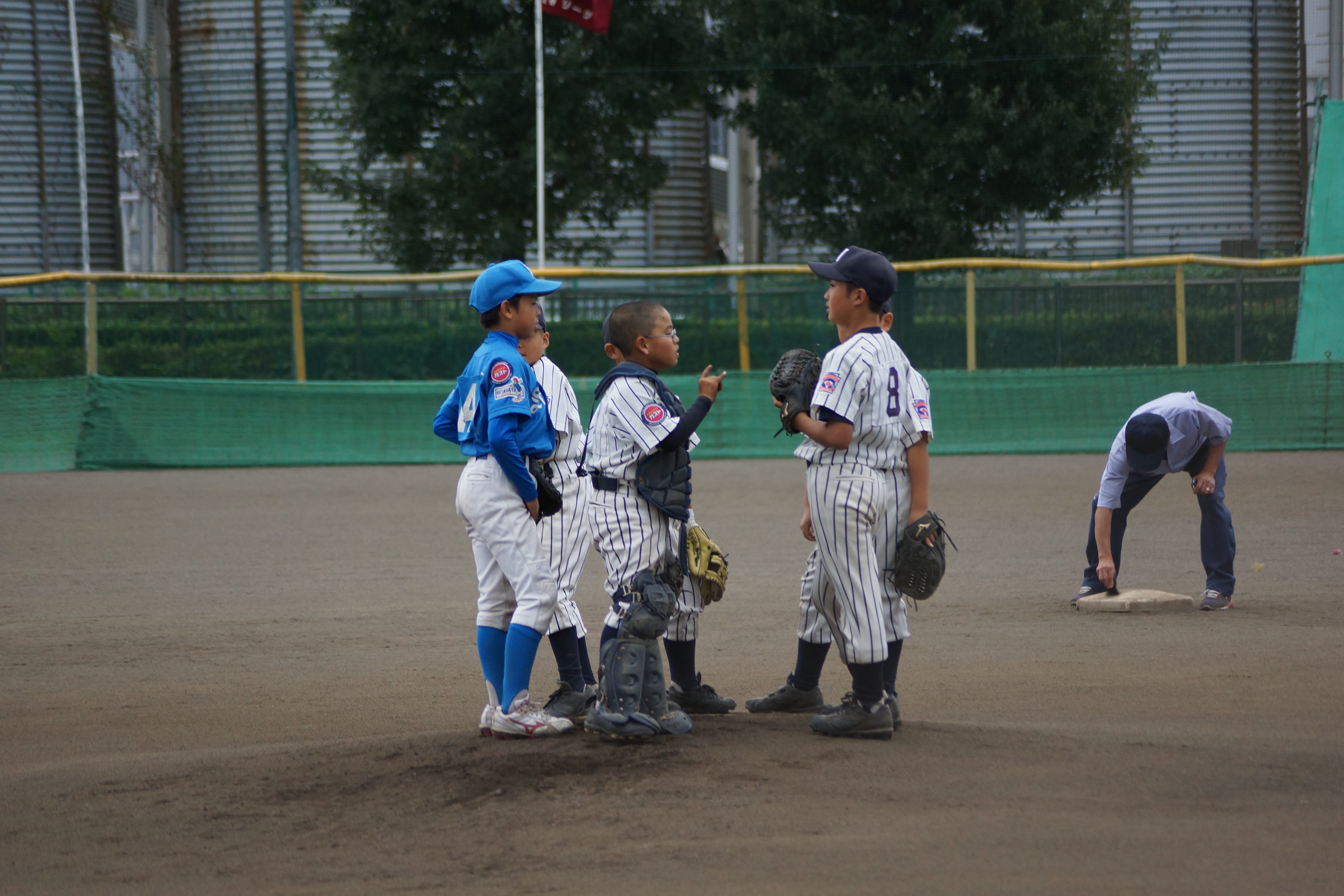連合チームもたまらずマウンドに集まります!