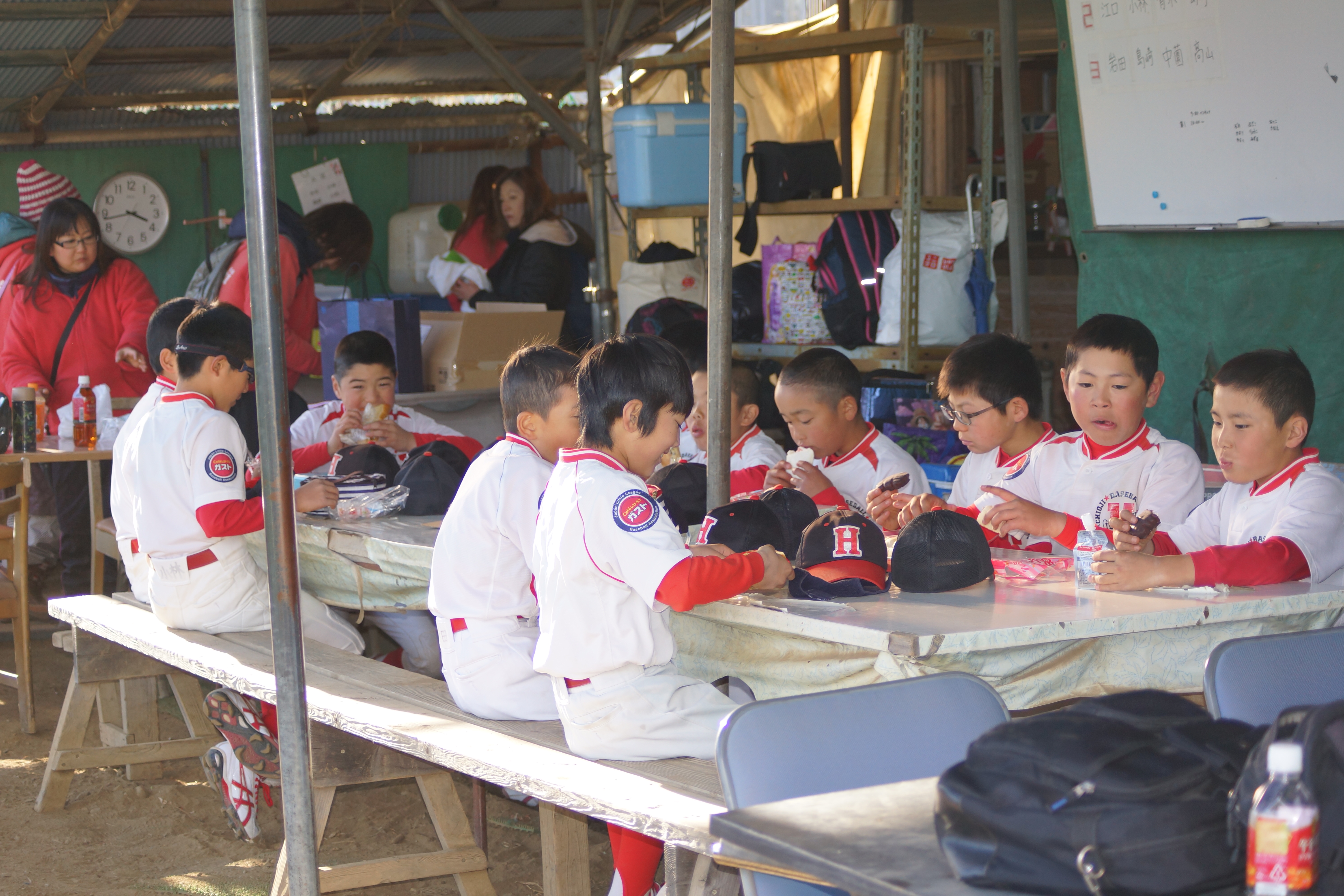 みんながお弁当・補食を食べたりする通称「ママ小屋」に