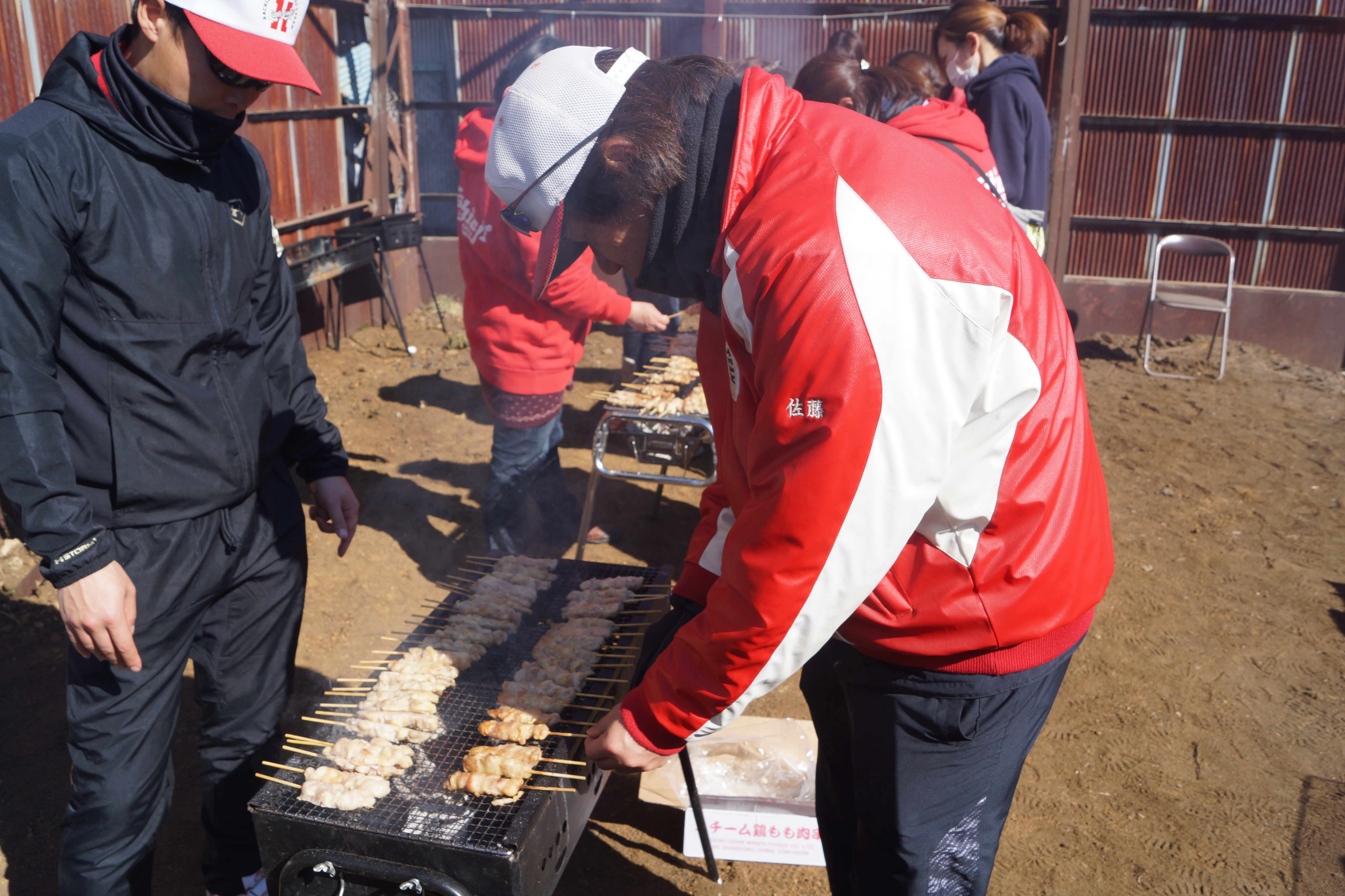 ジュニア父代表も、手際よく焼き鳥の焼き具合をチェック!