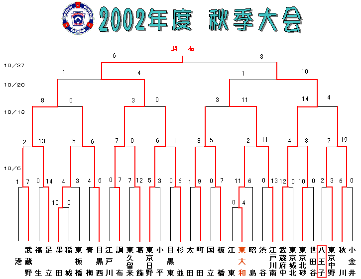 このトーナメント表は、東大和リーグさんのホームページからコピーさせていただいたものを加工したものです。
