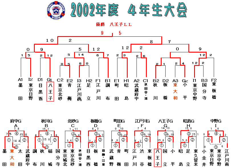 このトーナメント表は、東大和リーグのホームページからコピーさせていただいた表を編集して使用させていただいてます。問題があれば、ご連絡ください